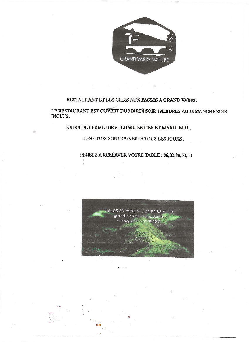 OUVERTURE GITES ET RESTAURANT GRAND-VABRE