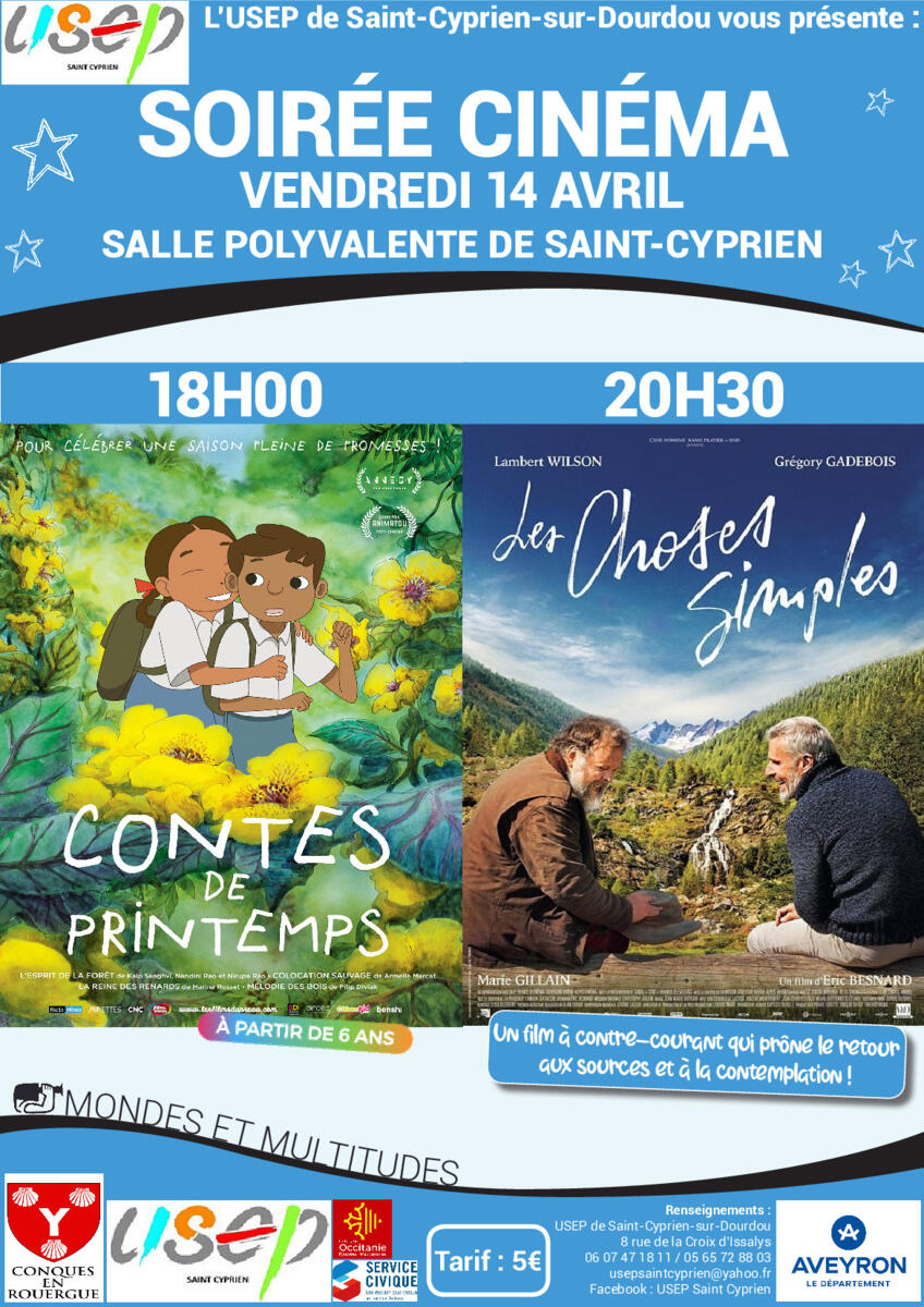 L'Usep organise une soirée cinéma le vendredi 14 Avril à 18h00 et 20h30, salle polyvalente.