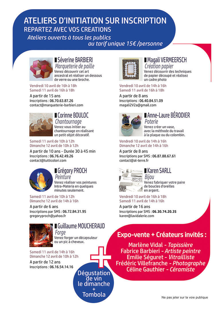 L'association Vallées des Arts participe aux Journées Européennes des Métiers d'Art le 10, 11 et 12 avril à Pont-les-Bains.