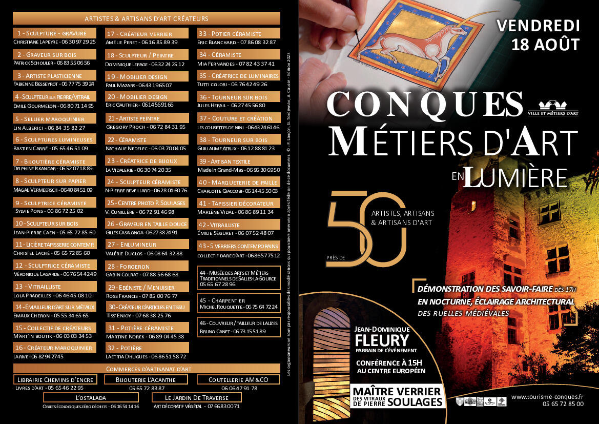 Vendredi 18 août, se déroulera à Conques l’événement Métiers d’art en lumière.