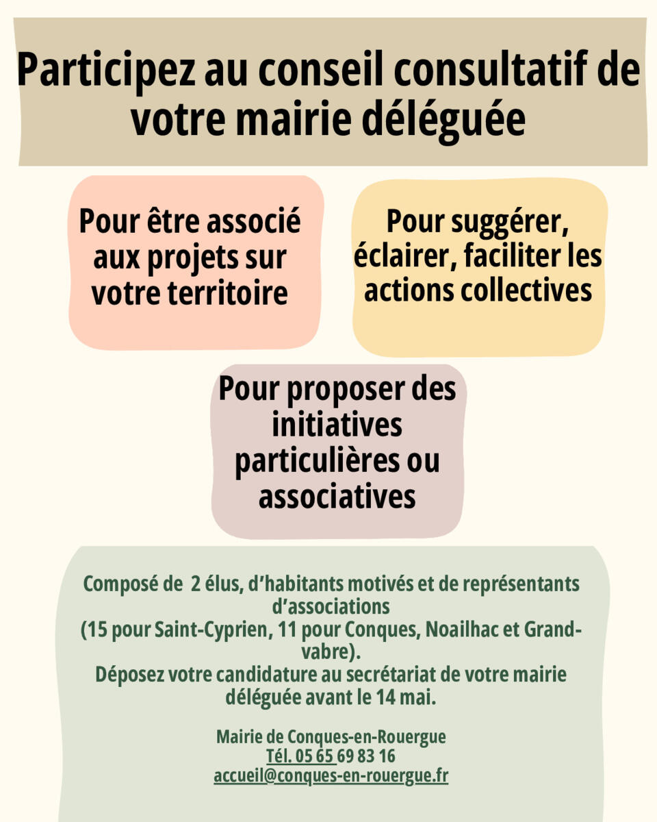 Si vous êtes intéressé pour y participer, merci de déposer votre candidature aux jours d’ouverture de votre mairie déléguée. Les réponses sont attendues avant le 14 mai. Merci d’indiquer vos coordonnées.