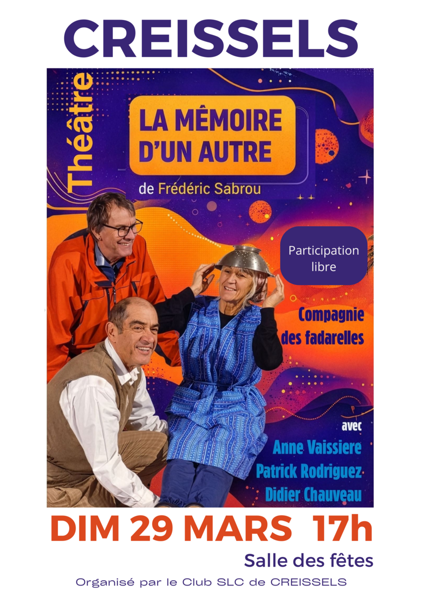 🎭 Théâtre à Creissels – Dimanche 29 mars à 17h