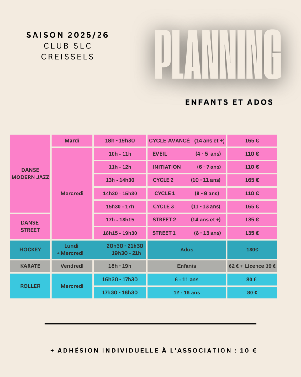 👉 Découvrez le planning complet des activités pour adultes, enfants et ados !