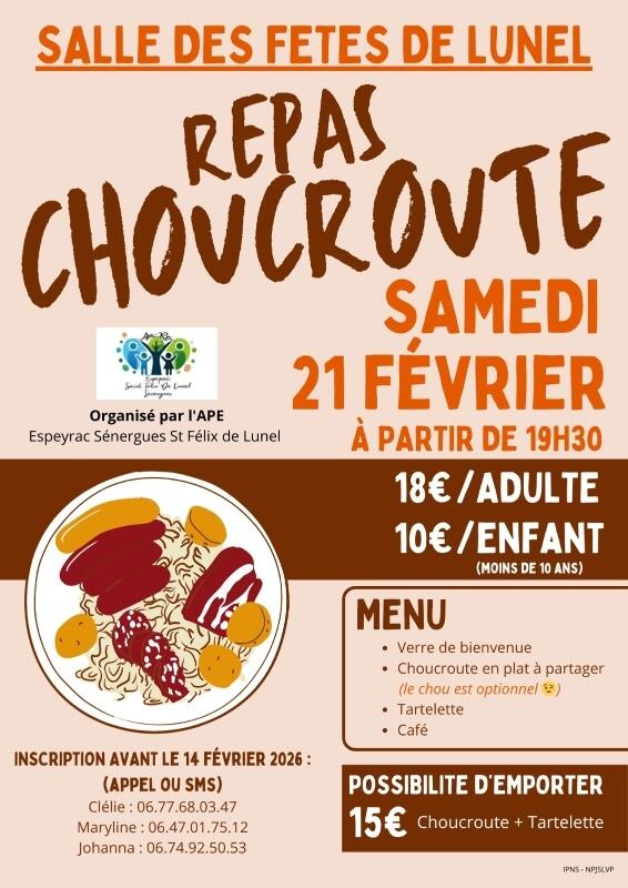 Votre mairie / Actualités / Soirée Choucroute de l'APE - Samedi 21 Février à Lunel