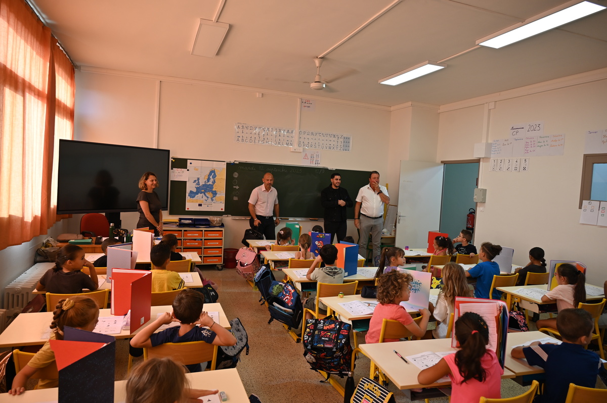 Monsieur le Maire Nicolas BAZZUCCHI, et Thierry ILLY, Adjoint au Maire délégué aux affaires scolaires, se sont rendus dans tous les groupes scolaires de la commune afin d’offrir aux enfants des petites sections de maternelle et aux CP, un kit de fournitures scolaires. Kit qui a été réalisé en concertation avec les enseignants.