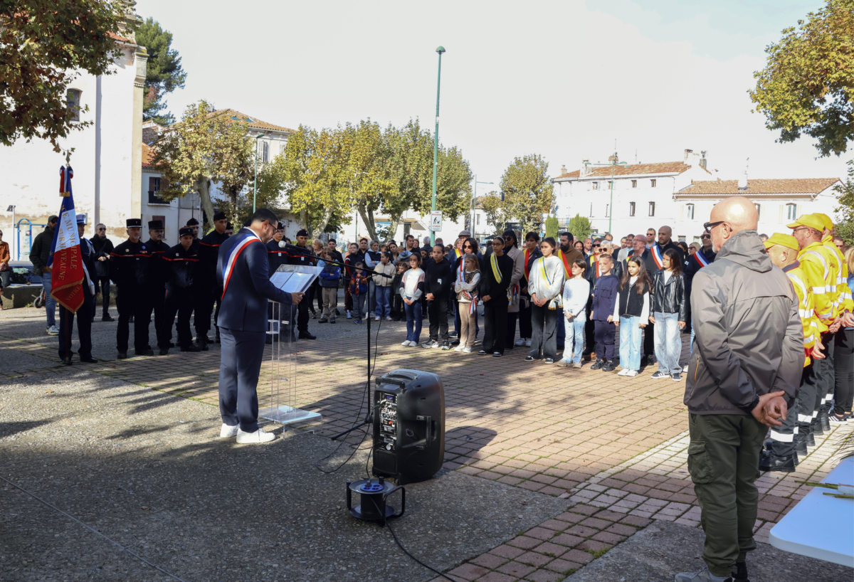 La cérémonie de commémoration de l’Armistice s’est tenue ce mardi 11 novembre 2025 devant le Monument aux Morts, en présence des élus du Conseil Municipal, du Conseil Municipal des Jeunes, des Jeunes Sapeurs-Pompiers, des jeunes conseillers départementaux, de notre porte-drapeau et de la Réserve Communale, ainsi que de nombreux Pennois et Pennoises venus rendre hommage aux soldats morts pour la France.