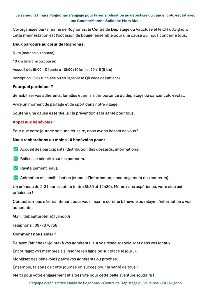 / Info Appel aux bénévoles Course solidaire