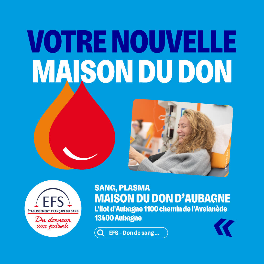 La Maison du don de l’EFS, située dans la zone commerciale des Paluds, accueille les donneurs du lundi au samedi. Ce site de proximité contribue à répondre aux besoins croissants en plasma, indispensable à la fabrication de médicaments pour de nombreux patients.