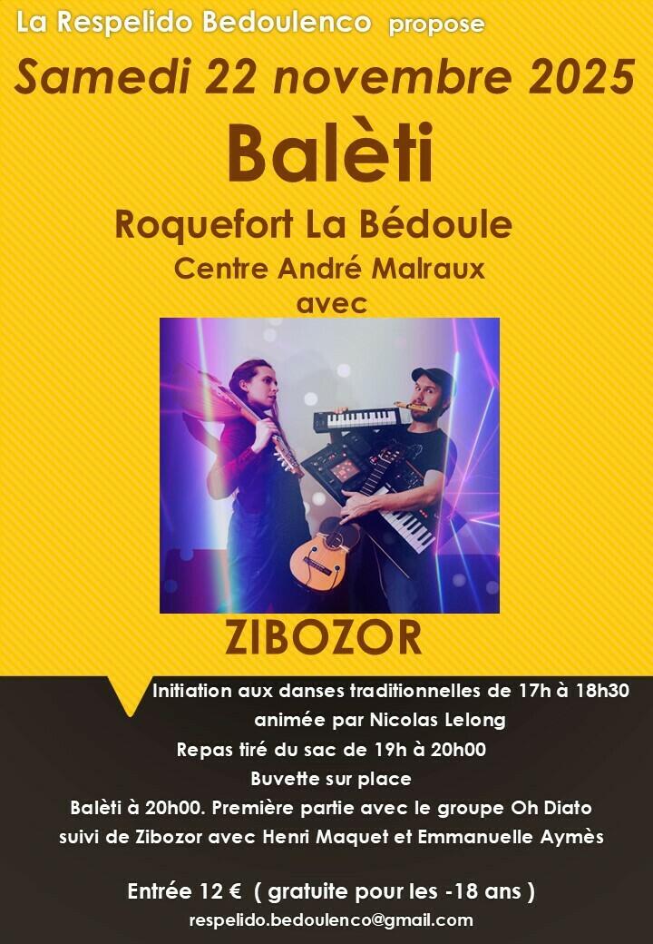 🎼 Balèti par la Respelido Bedoulenco - A partir de 17h au centre culturel André Malraux. Tarif : 12€ / gratuit pour les - de 18 ans