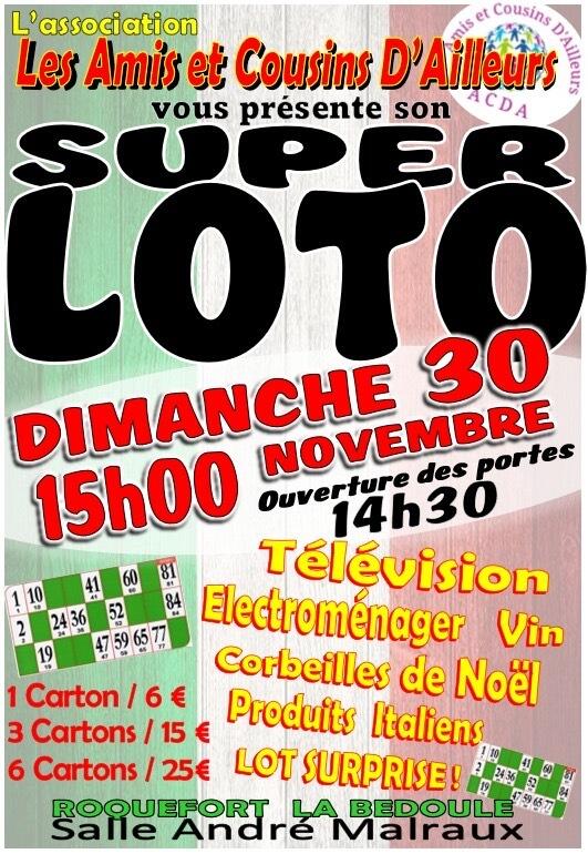 🎲 Loto de l'association Amis et Cousins d'Ailleurs - Ouverture des portes à 14h30 au centre culturel André Malraux. Tarifs : 6€ le carton, 15€ les 3, 25€ les 6