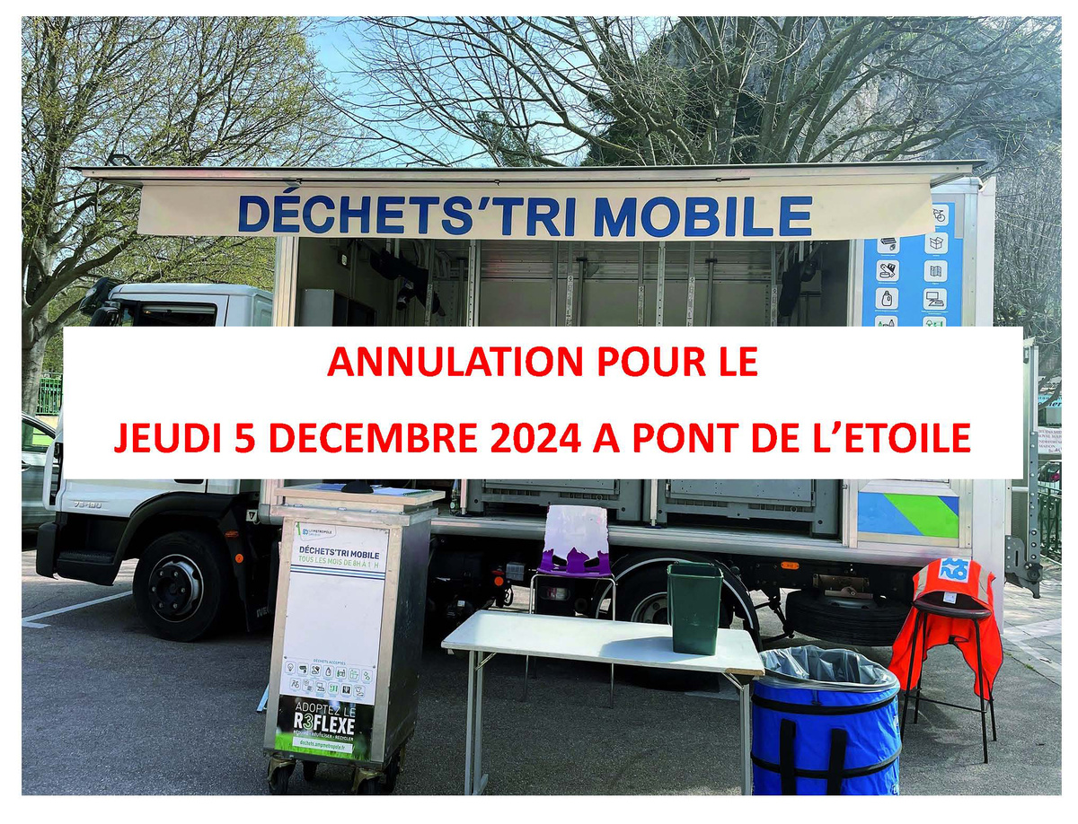 La Déchets'Tri mobile prévue le jeudi 5 décembre 2024 sur le parking des écoles à Pont de l'Etoile est ANNULEE.