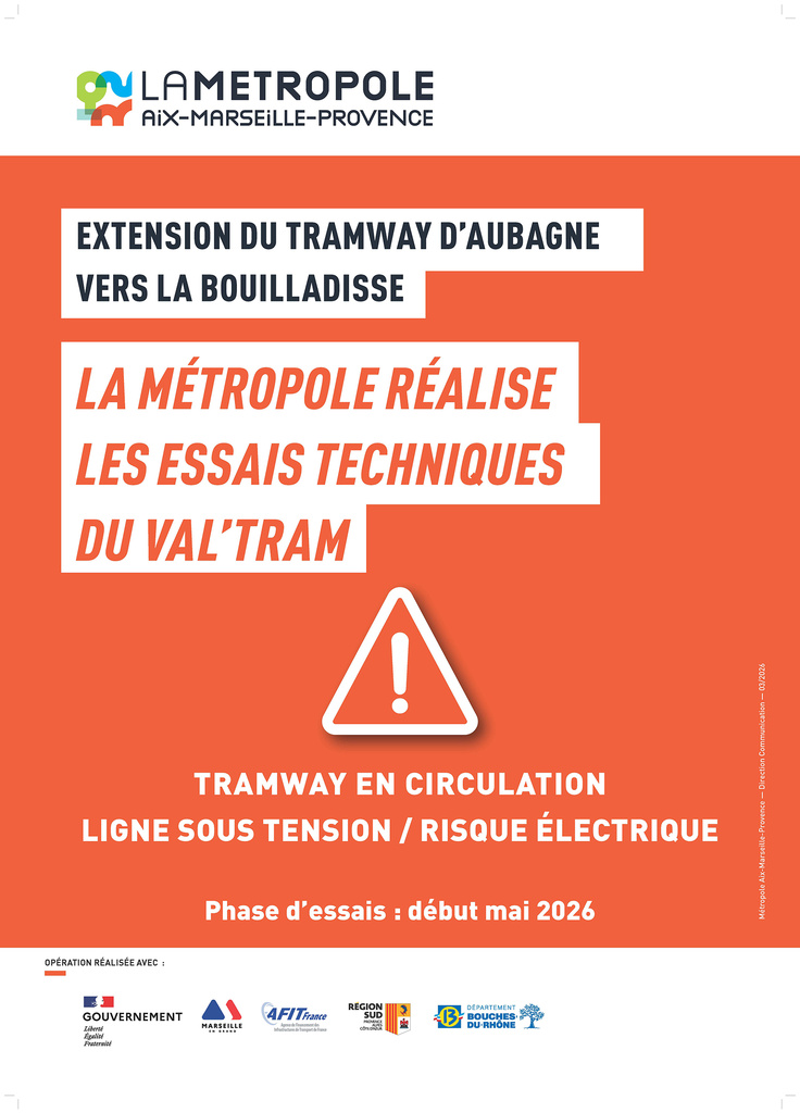 Le Val’Tram va prochainement entrer dans la phase "essais" sur l’ensemble de sa ligne entre Aubagne et La Bouilladisse avec la mise sous tension 750 V (nuit du 5 au 6 mai) et les premières circulations des rames d’essai le 12 mai.