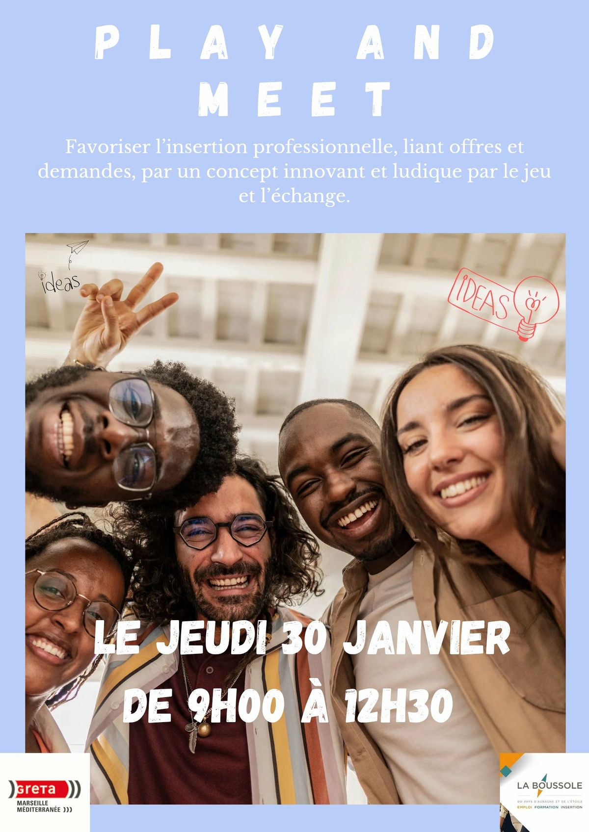 "Favoriser l'insertion professionnelle, liant offres et demandes, par un concept innovant et ludique par le jeu et l'échange".