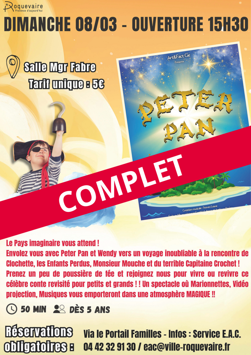 🔴Le spectacle enfants « Peter Pan », prévu ce dimanche à la Salle Monseigneur Fabre, affiche désormais complet !🔴