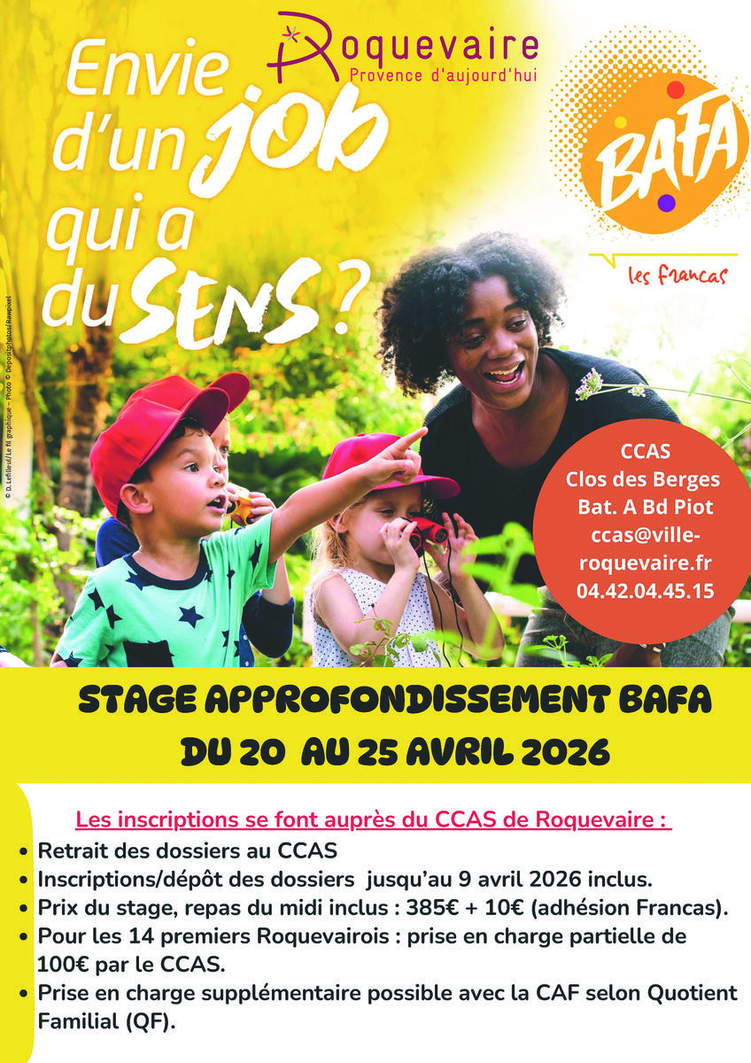 Une nouvelle session, organisée par le CCAS de Roquevaire et Les Francas, est programmée du 20 au 25 avril 2026. Pensez à vous inscrire !