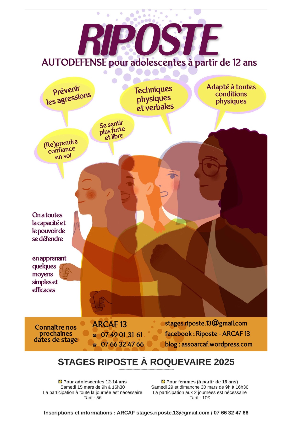 📍INSCRIPTIONS et INFORMATIONS : ARCAF stages.riposte.13@gmail.com – 07 66 32 47 66