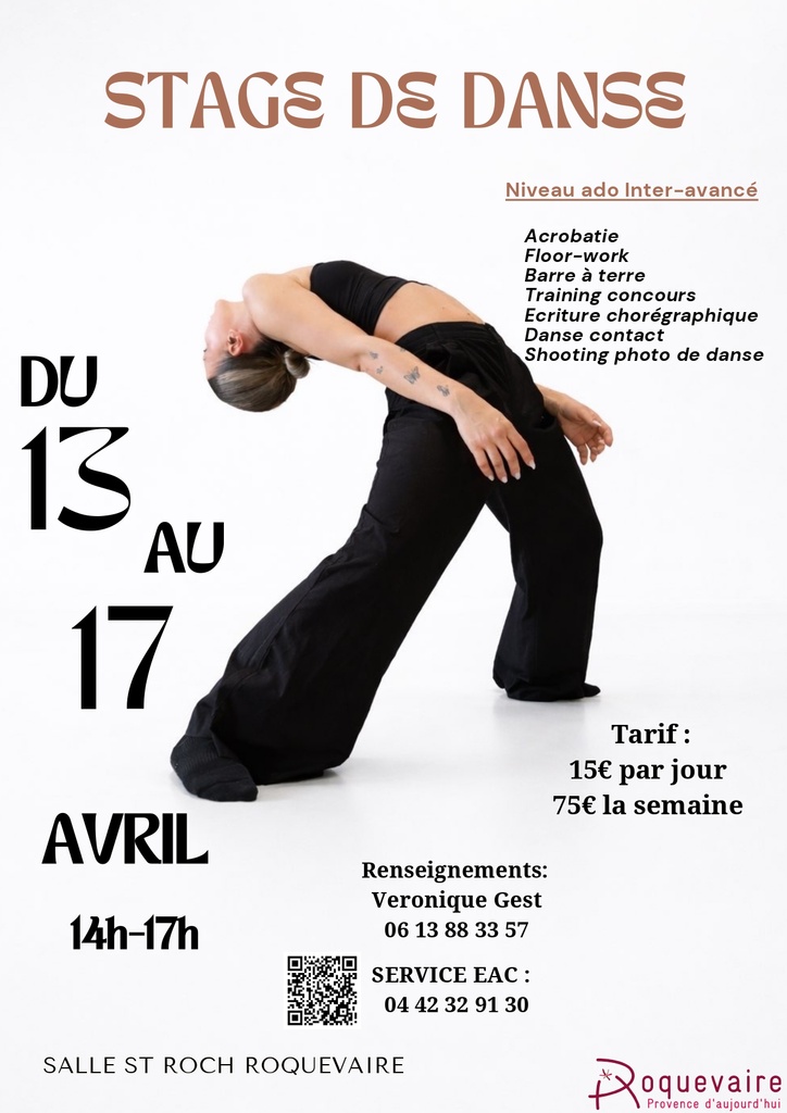 ⏩ Danse ados du 13 au 17 avril, au complexe sportif Saint-Roch : 75 € la semaine ou 15 € la journée.