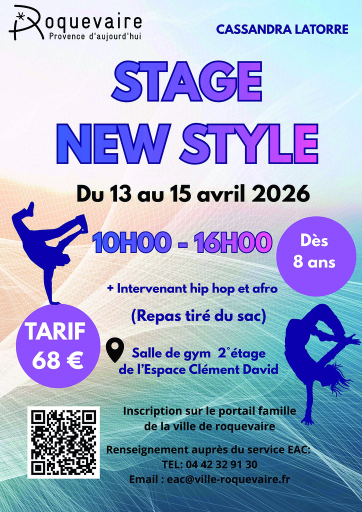 ⏩ New style hip hop du 13 au 15 avril, salle de gym+ salle de de bien-être et salle de danse de l'Espace Clément David : forfait 3 jours 68 €.