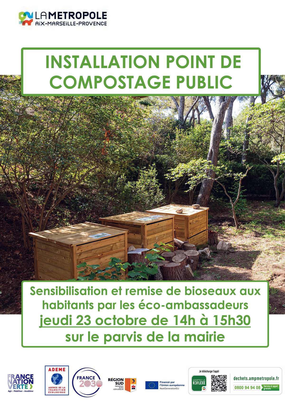 La Métropole Aix-Marseille-Provence va installer un point de compostage public le mercredi 22 octobre à Roquevaire, angle du boulevard Piot et de la promenade des Berges de l’Huveaune.