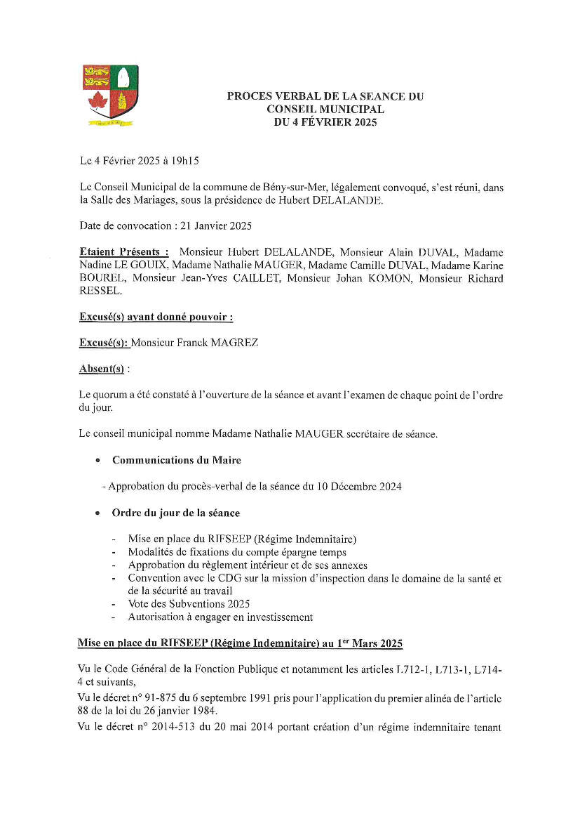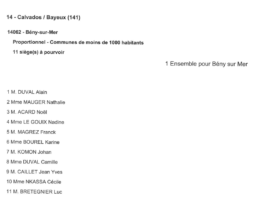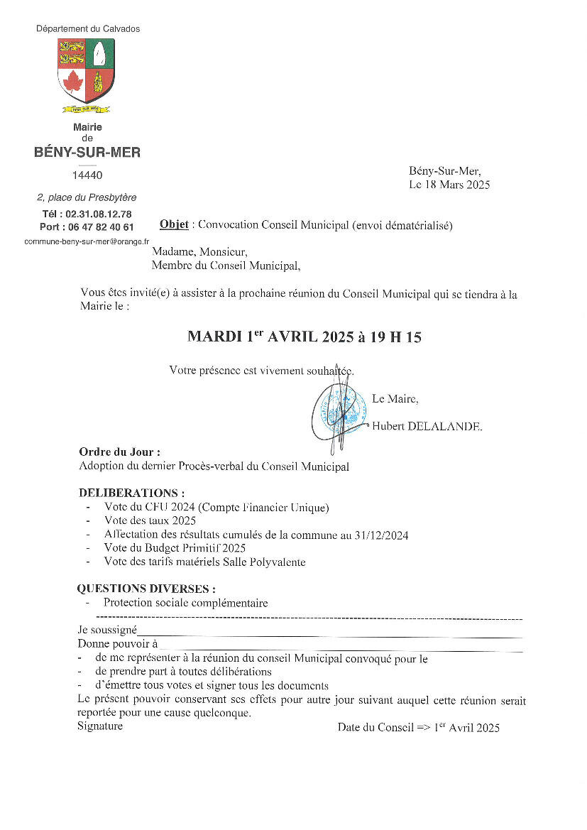 Toute l'actualité de Mairie de Bény-sur-Mer