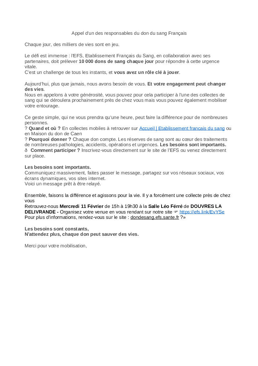 DON DE SANG Urgent