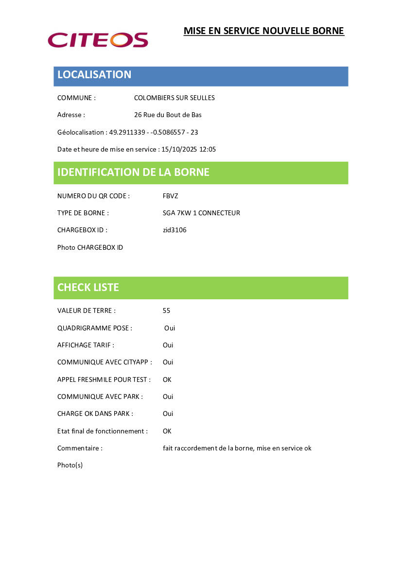Votre mairie / Actualités / Mise en service de la borne électrique rue du Bout de Bas