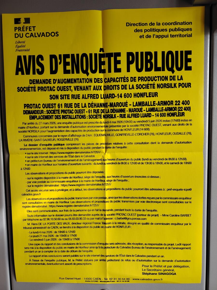 La société PROTAC OUEST, venant aux droits de la société NORSILK, a déposé une demande d'autorisation environnementale pour l'augmentation de la capacité de production des installations de préservation du bois ainsi que la régularisation de sa situation administrative.