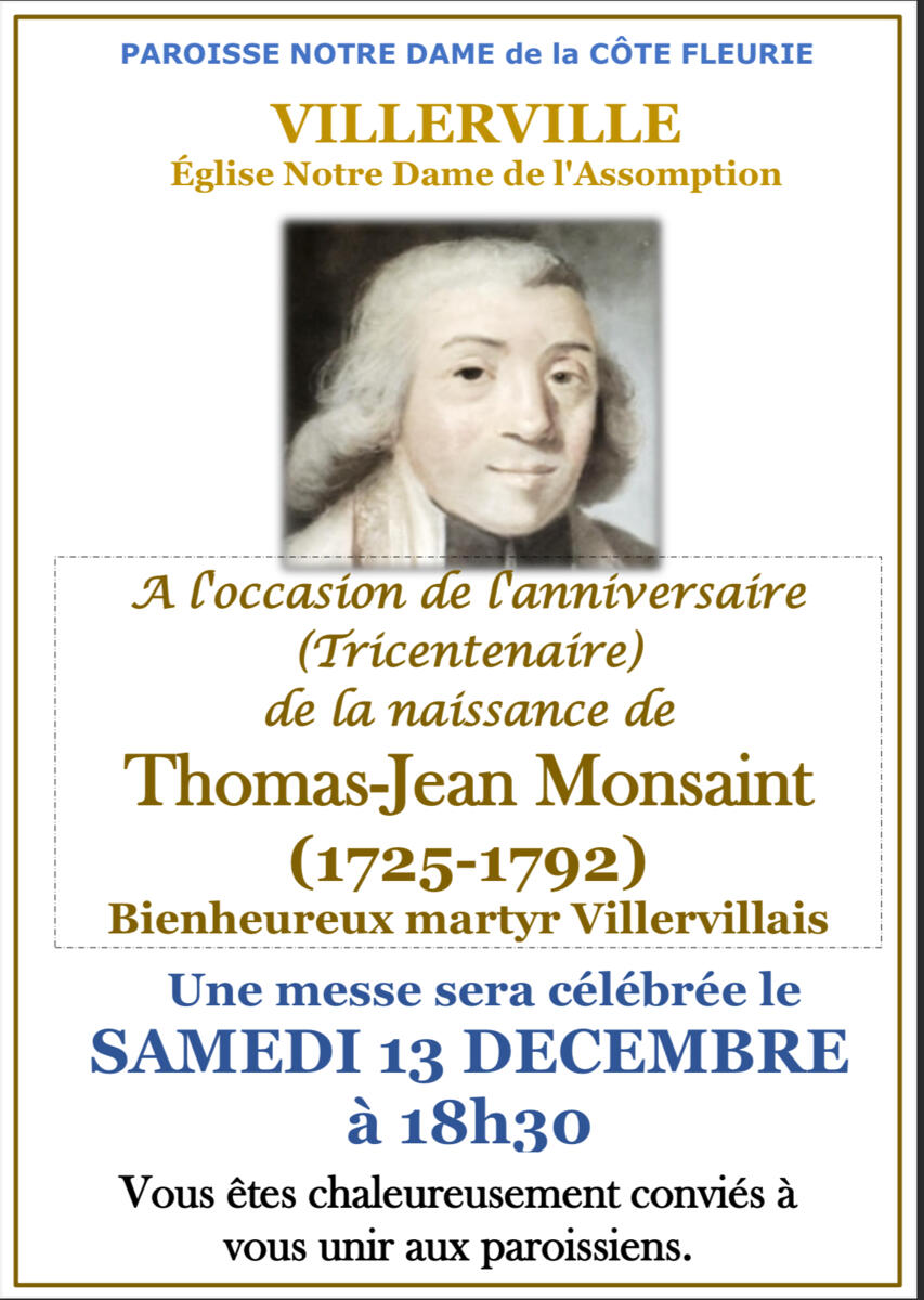 Thomas-Jean MONSAINT nacquit à la Bergerie de Villerville (près de l’hôpital actuel) le 18 décembre 1725 et fut exécuté sous la Terreur le 2 septembre 1792 à Paris.