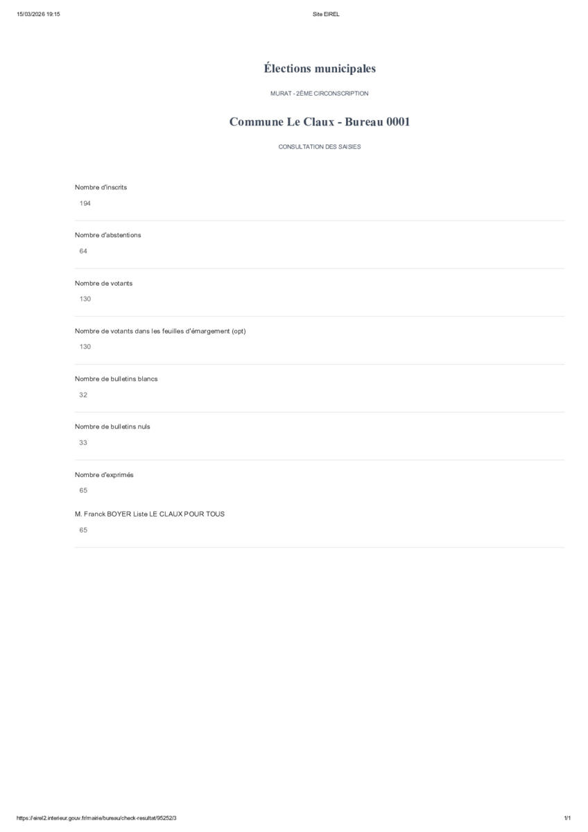 Le Claux Scrutin du 21 Mars 2026