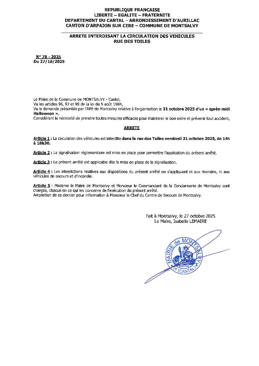 ARRETE INTERDISANT TEMPORAIREMENT LA CIRCULATION