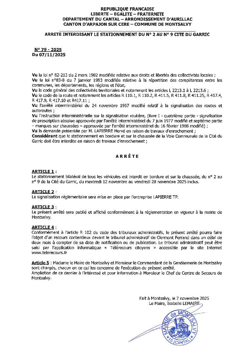 INTERDICTION DE STATIONNEMENT CITE DU GARRIC
