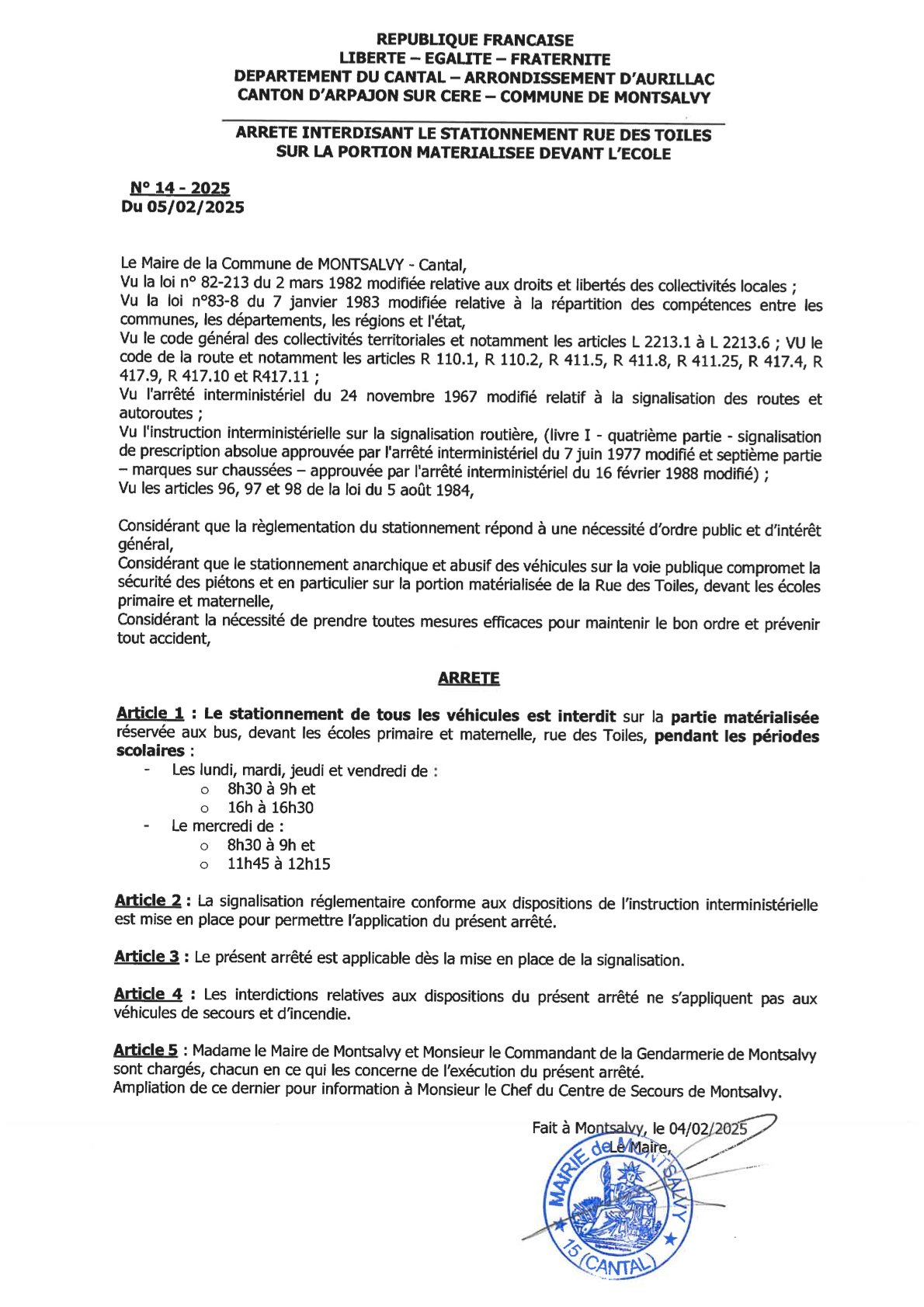 INTERDICTION PERMANENTE DE STATIONNEMENT DEVANT L'ECOLE