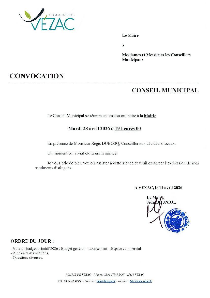 CONSEIL MUNICIPAL : REUNION EN SESSION ORDINAIRE