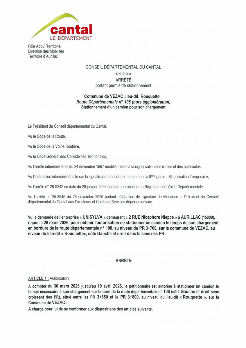 ARRETE PORTANT PERMIS DE STATIONNEMENT