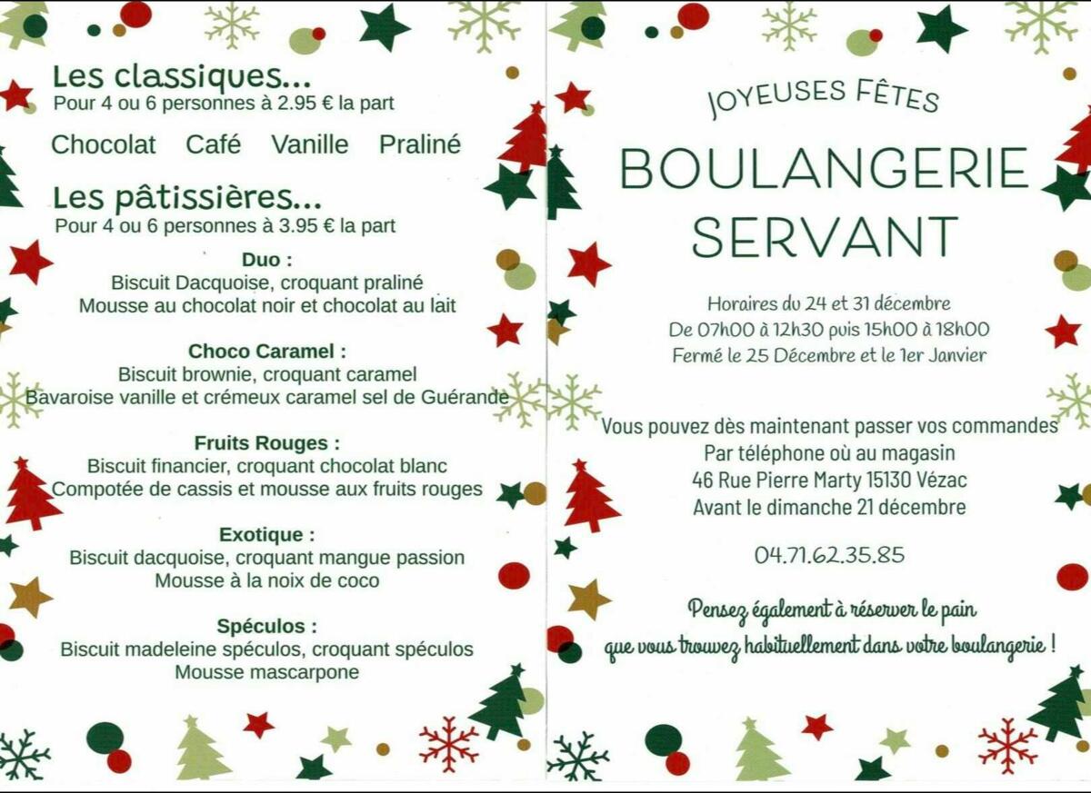 Boulangerie SERVANT : Vous propose pour les fêtes...