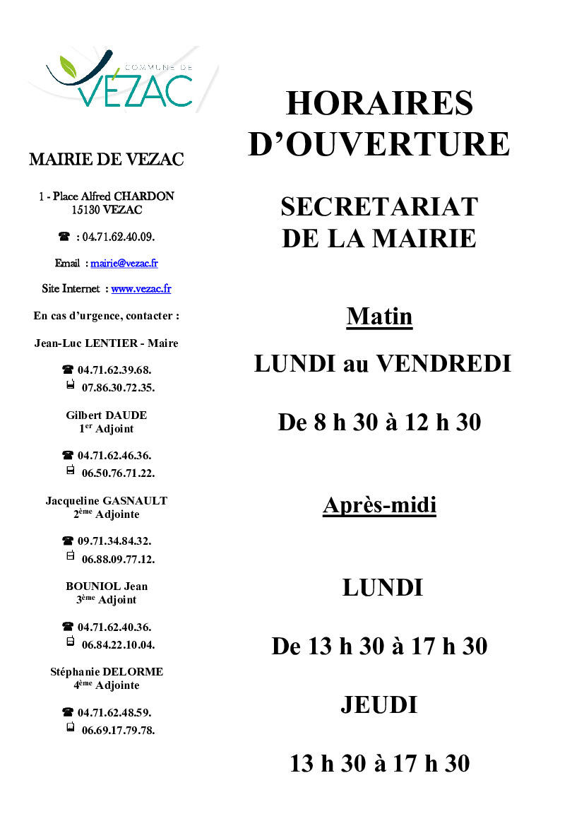 Ci-joint rappel des horaires d'ouverture au public de la Mairie. 😏