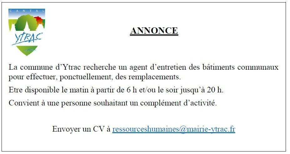 La commune d'Ytrac recrute (urgent)