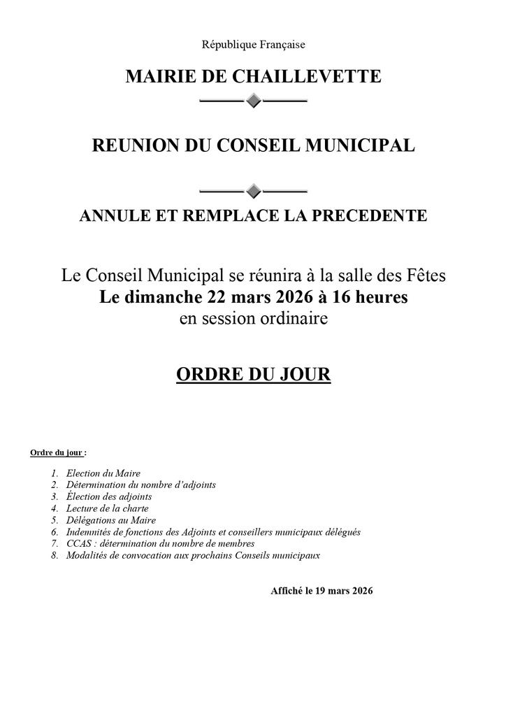 Votre mairie / Actualités / CONSEIL MUNICIPAL DE CHAILLEVETTE