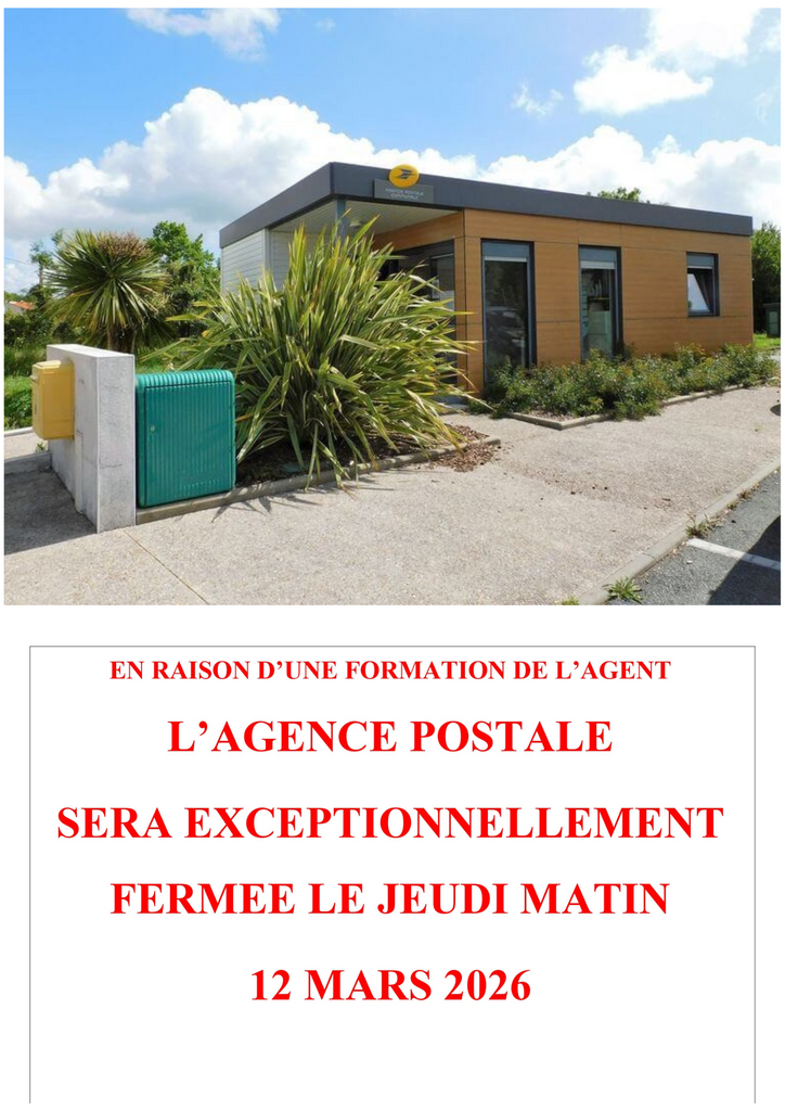 FERMETURE EXCEPTIONNELLE DE L'AGENCE POSTALE