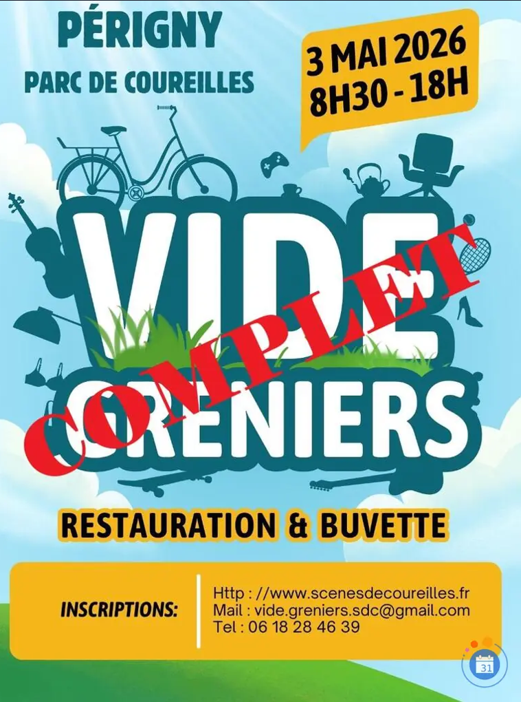 Vide-greniers Parc de Coureilles de 8h30 à 18h Inscriptions exposants complètes Restauration & buvette sur place Venez chiner et passer un bon moment !