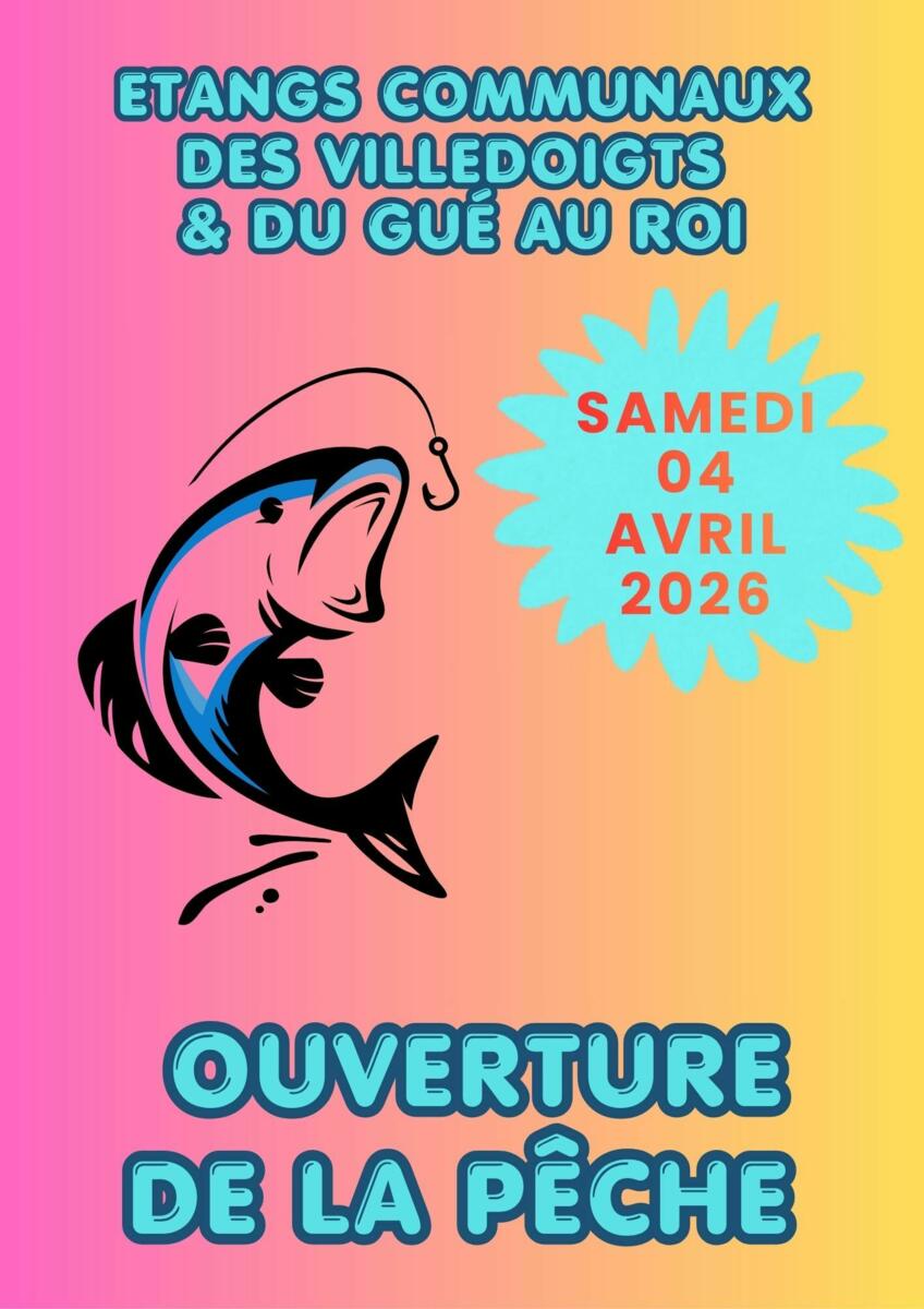 📢 La saison de pêche 🐟 dans les étangs communaux de Villedoigts et du Gué au Roi débutera samedi 04 avril.