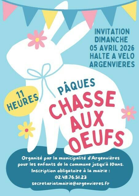 Rappel Inscriptions Chasse Aux Oeufs De Pâques 30/03/2026 Pour les parents qui n'ont pas encore répondu, merci de nous indiquer si vos enfants seront présents à la chasse aux oeufs de pâques avant mardi 31/03/26.