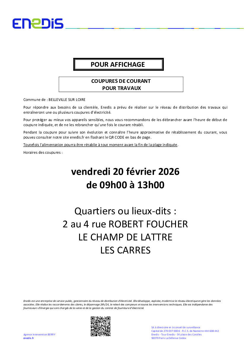 Enedis vous informe d'une coupure d'électricité le 20/02