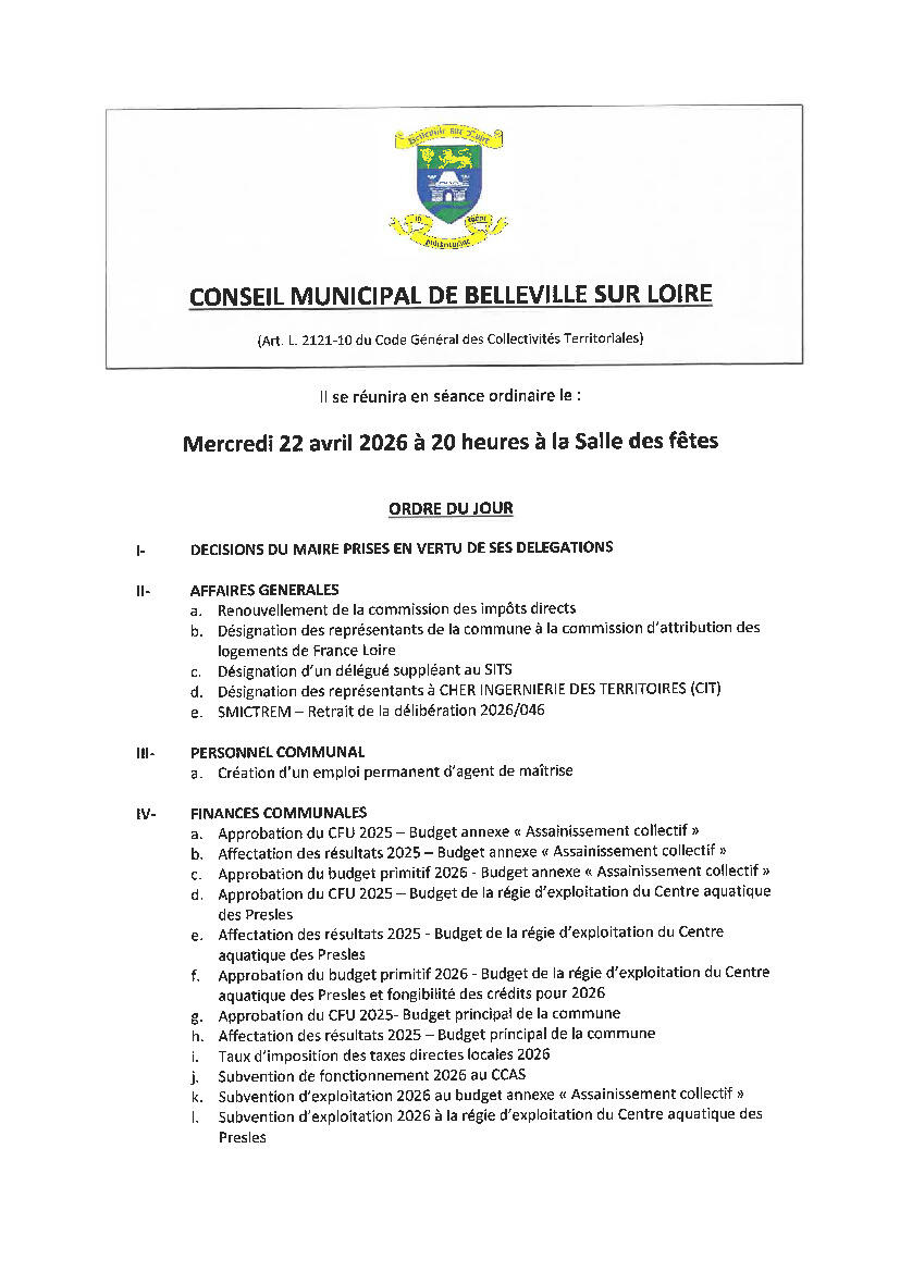 Conseil municipal Mercredi 22 Avril 2026 Ordre du Jour