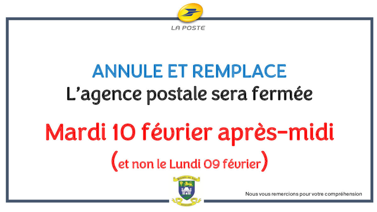 Agence postale fermée le Mardi 10 février 2026