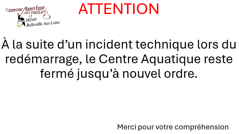 Centre Aquatique fermé jusqu'à nouvel ordre