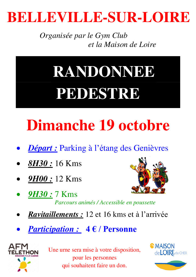 Le Gym Club et la Maison de Loire du Cher organisent une randonnée pédestre pour le Téléthon.