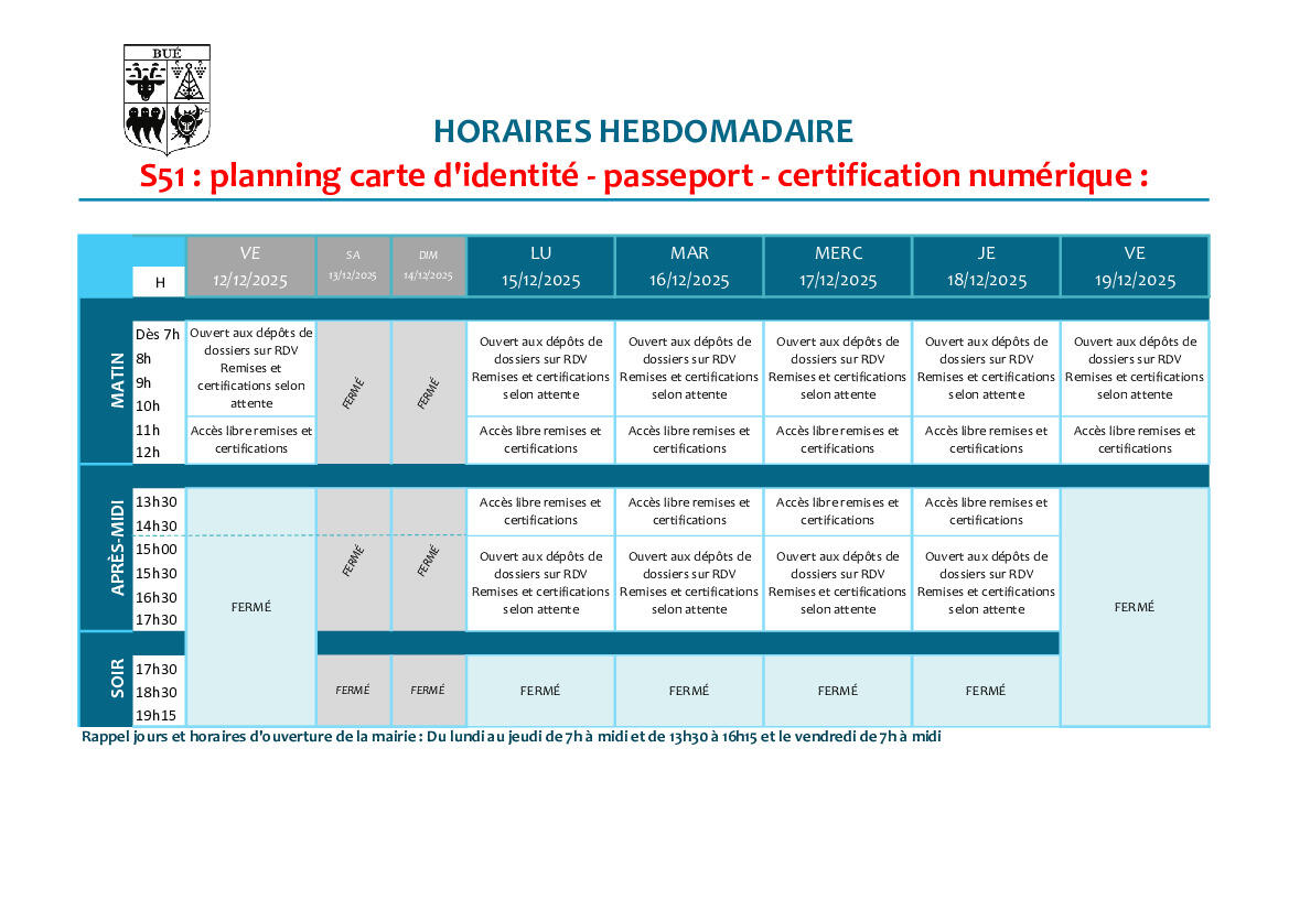 Planning d'ouverture S49