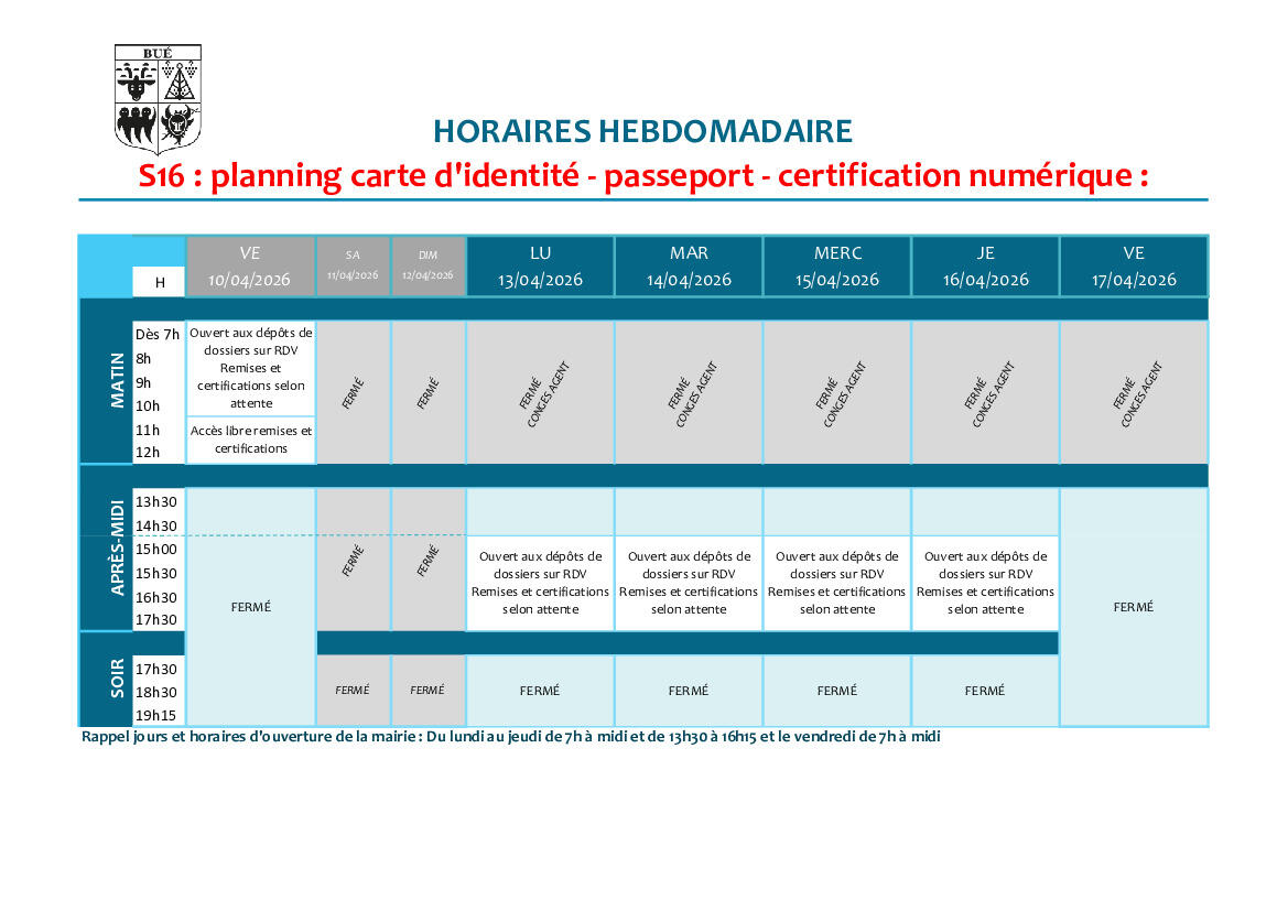 Planning d'ouverture S16 ET 17