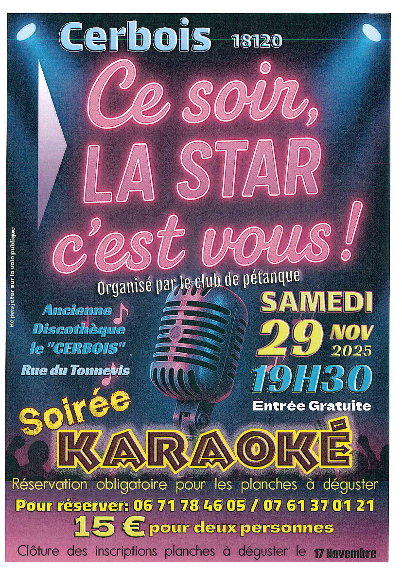 SOIRÉE KARAOKÉ CERBOIS 29 NOVEMBRE 2025